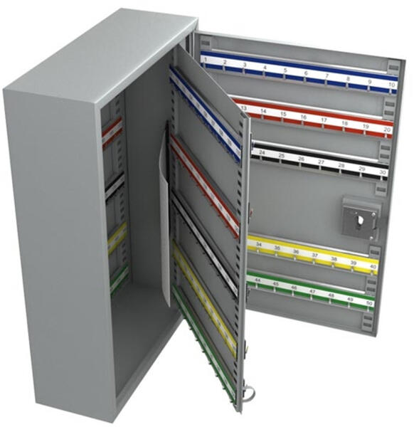 masszív kulcsszekrényfélcilinderes zárbetéthez előkészítveszimplafalú acél házjobbra nyíló ajtókihajtható kulcsakasztó táblaállítható magasságú akasztóléceklapozható kulcsjegyzék műanyag tasakbannégy rögzítő furat hátrafelérögzítő csavarokkal, zárbetét nélkül áruljuk