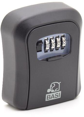 masszív kulcstároló széf, beltéri és kültéri használatra, erős alumínium öntvény test, masszív lefelé nyíló ajtó, krómozott 4 tárcsás számzár, 10.000 elméleti kódvariáció, elcsúsztatható zártakaró fedél, falra szerelhető (rögzítő furatok hátrafelé), legfeljebb 9 cm hosszú kulcsokhoz, rögzítő csavarokkal áruljuk