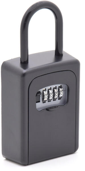 masszív kulcstároló széfkihúzható edzett acél kengyelkettős reteszeléssel, gimi bevonattalbeltéri és kültéri használatra egyaránterős alumínium öntvény testmasszív lefelé nyíló ajtókrómozott 4 tárcsás számzár10.000 elméleti kódvariációelcsúsztatható zártakaró fedélajtóhoz, kerítéshez, kilincshez rögzíthetőigény esetén falra is szerelhetőlegfeljebb 9 cm hosszú kulcsokhozrögzítő csavarokkal áruljuk