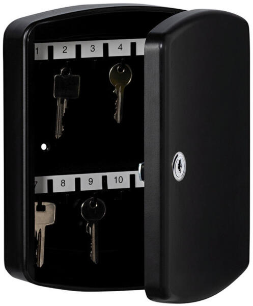 minőségi kulcskazetta erős acéllemez ház és ajtó masszív rejtett zsanérozás elegáns lekerekített forma számozott fix akasztók minőségi 5 csapos cilinderzár kettő darab kulccsal falra szerelhető többféle méretben fekete és fehér színben rögzítő csavarokkal nyerskulcs típusa: 65R