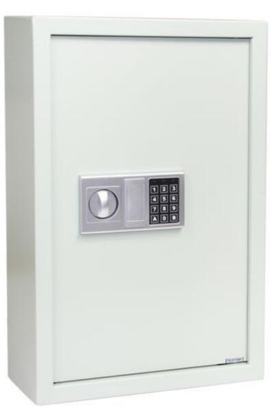 Kulcsszéf Az acélkulcsos széf nagyszerű választás, ha azt szeretné, hogy csak néhány ember férhessen hozzá a kulcsokhoz. p > A MESTER kód opcióval ellátott elektronikus zárnak köszönhetően csak Ön vagy az Ön által felhatalmazott személyek férhetnek hozzá a széfhez. A felhasznált anyag szilárdsága is hozzájárul a biztonságához (ajtó 4 mm; héj 1,5 mm). A 133 kampókkal elegendő tárolóhelyet biztosít . Ezenkívül a horgok különböző méretű kulcsokhoz állíthatók. A csomag tartalma: összeszerelési anyag, elemek, 2 vészkulcs és színes, kulcstartókkal ellátott névcímkék. A széf súlya 20 kg. A felhasznált acél szilárdsága is hozzájárul a széf biztonságához
