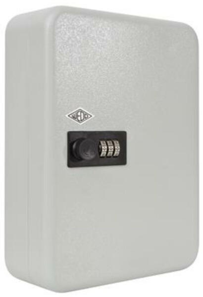 mechanikus számzárral felszerelt acél szekrény 24 db kulcs tárolására egyidejűleg több felhasználó használhatja külön állítható 3 számjegyű kóddal a kulcstartó hurkok a tartozék kulcscímékkel megjelölhetőek falra szerelhető, szerelési tartozékokkal és használati útmutatóval méret: 18,6 x 9,4 x 25 cm